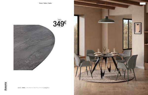 19453 Anora Mesa Redonda / Table Ronde / Round Table �130 × 76 cm 19611 Ansu( 2P / C) Sillón / Fauteuil / Armchair 57,5 × 57 × 47,5 / 86 cm