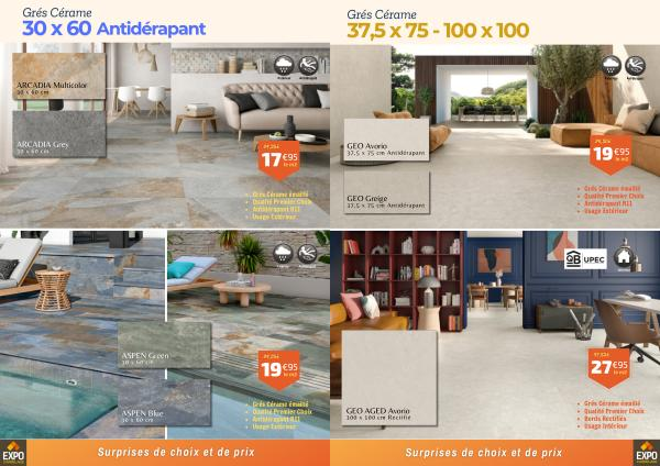 Grés Cérame émaillé Qualité Premier Choix Antidérapant R11 Usage Extérieur
